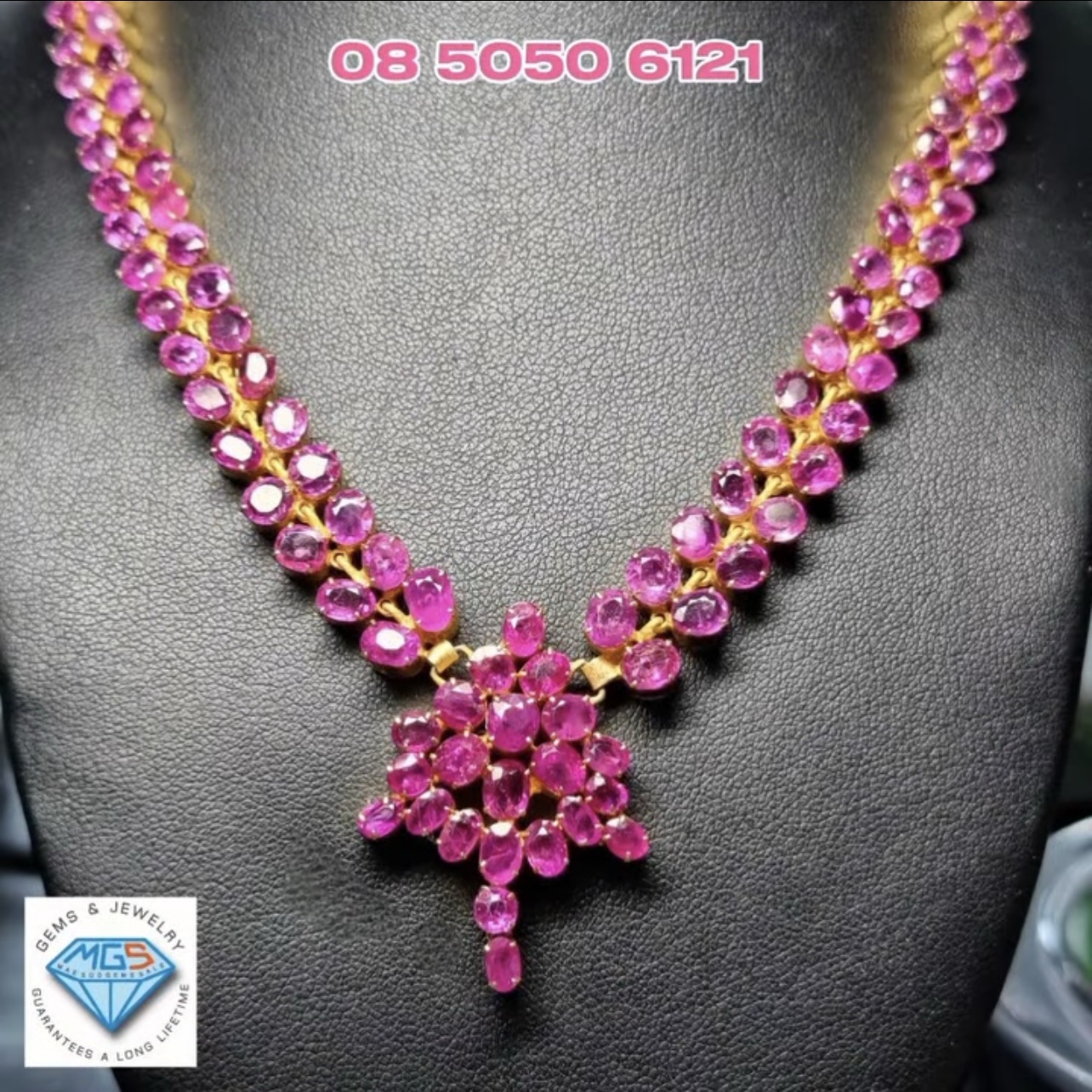 สร้อยทับทิมพม่า พลอยดิบ 90 เม็ดแบบจุก ๆ พร้อมใบเซอร์การันตีของแท้ 100%