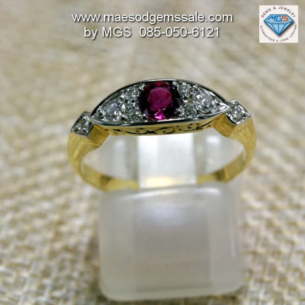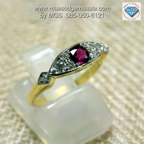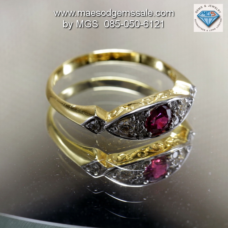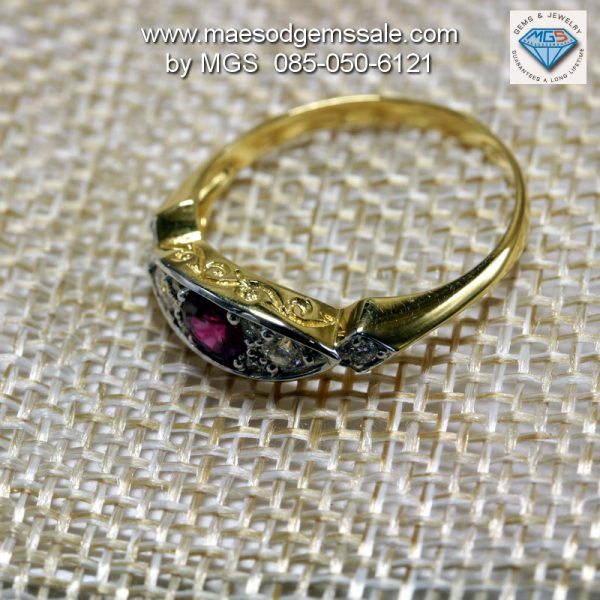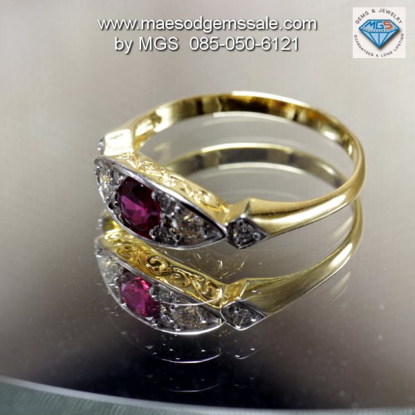 แหวนทับทิมสยาม เม็ดเดี่ยวตัวเรือนรูปโบว์ ทองคำแท้90 เพชรแท้น้ำ97-98 ขนาดแหวนเบอร์ 53.5(ปรับขนาดฟรี)